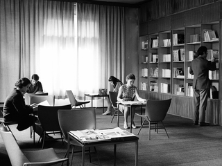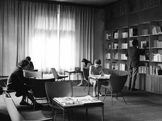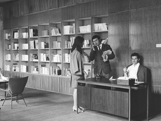 Prikaz preuređenog prostora centra, preuređenog po nacrtima Vjenceslava Richtera, tadašnji novi izgled Centra za kulturu i informacije. Na fotografijama Branimira Bakovića vidi se muzička slušaonica, čitaonica stručne štampe te kino dvorana.