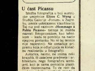 ČAST PICASSU, Elizza C. Wong, Studio Galerije Forum