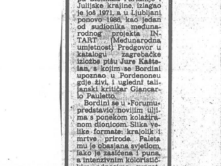 Pregled dosadašnjeg stvaralaštva Giorgia Bordinia te osvrt na djela izložena u Galeriji Forum