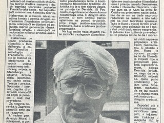 Gost Kulturno informativnog centra bio je njemački filozof i teoretičar društva Jürgen Habermas, jedan od najznačajnijih predstavnika Frankfurtske škole i suvremene kritičke teorije. Povodom njegova boravka u Zagrebu objavljen je intervju u listu Danas (22. 10. 1985.) u kojem govori o razvoju kritičke teorije, odnosu prema Marxu te o ulozi javnog diskursa i komunikativnog uma u demokratskom društvu.