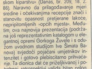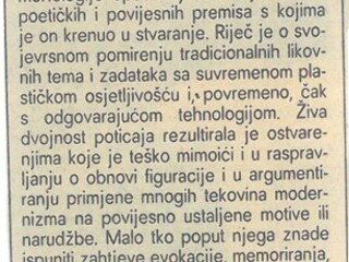 Osvrt na izložbu Vaska Lipovca koja se održalau Galeriji umjetnina u Splitu u siječnju 1988.