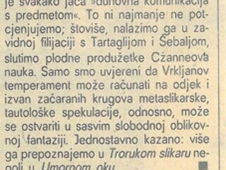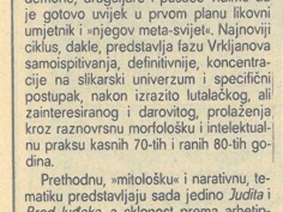 Osvrt na izložbu Zlatana Vrkljana koja se održala u Muzeju za umjetnost i obrt u Zagrebu u 1987.
