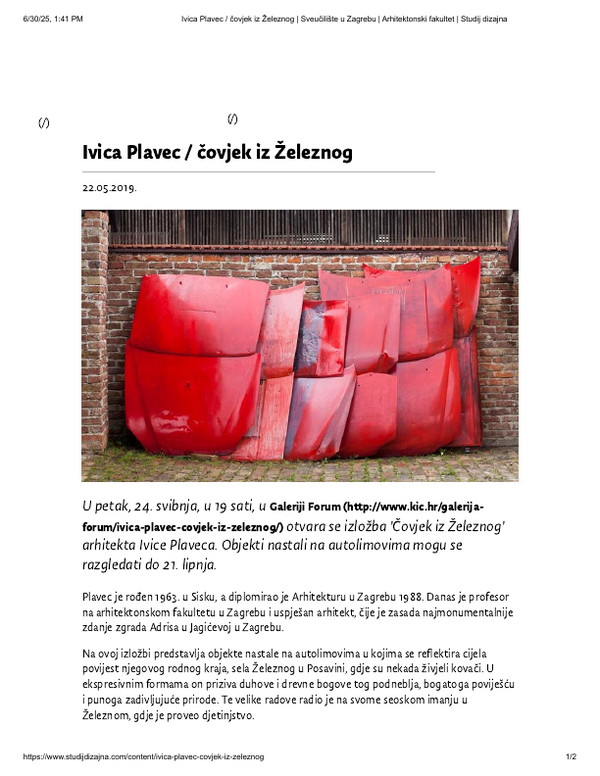 ČOVJEK IZ ŽELEZNOG, Ivica Plavec, Galerija Forum