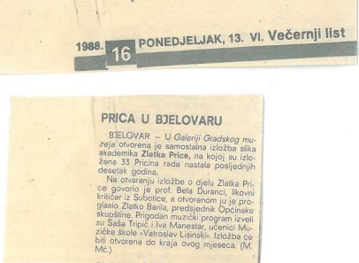 PRICA U BJELOVARU, Zlatko Prica, Galerija Gradskog muzeja