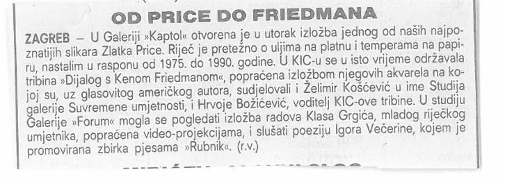 OD PRICE DO FRIEDMANA, Galerijska Aktivnost, Galerija Forum