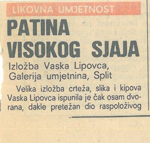 PATINA VISOKOG SJAJA, Vasko Lipovac, Galerija umjetnina u Splitu