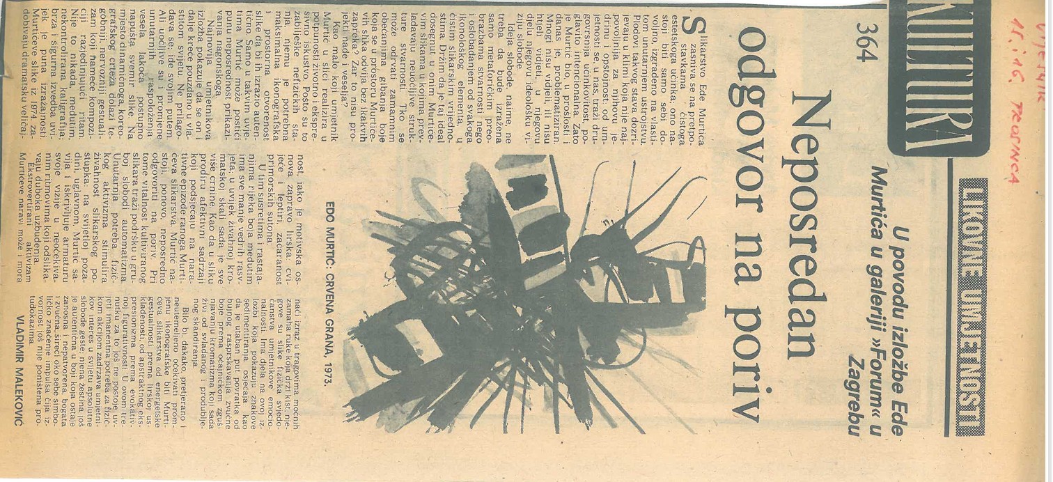 NEPOSREDAN ODGOVOR NA PORIV, Edo Murtić, Galerija Forum