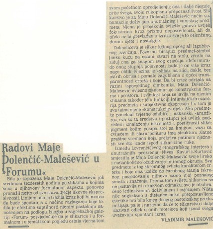 RADOVI MAJE DOLENČIĆ MALEŠEVIĆ U FORUMU, Maja Dolenčić-Malešević, Galerija Forum