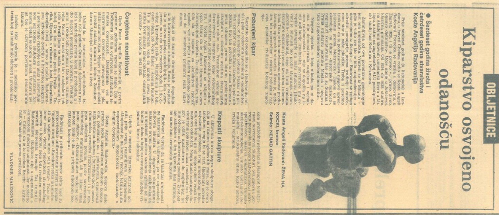 KIPARSTVO OSVOJENO ODANOŠĆU, Kosta Angeli Radovani, Galerija Forum