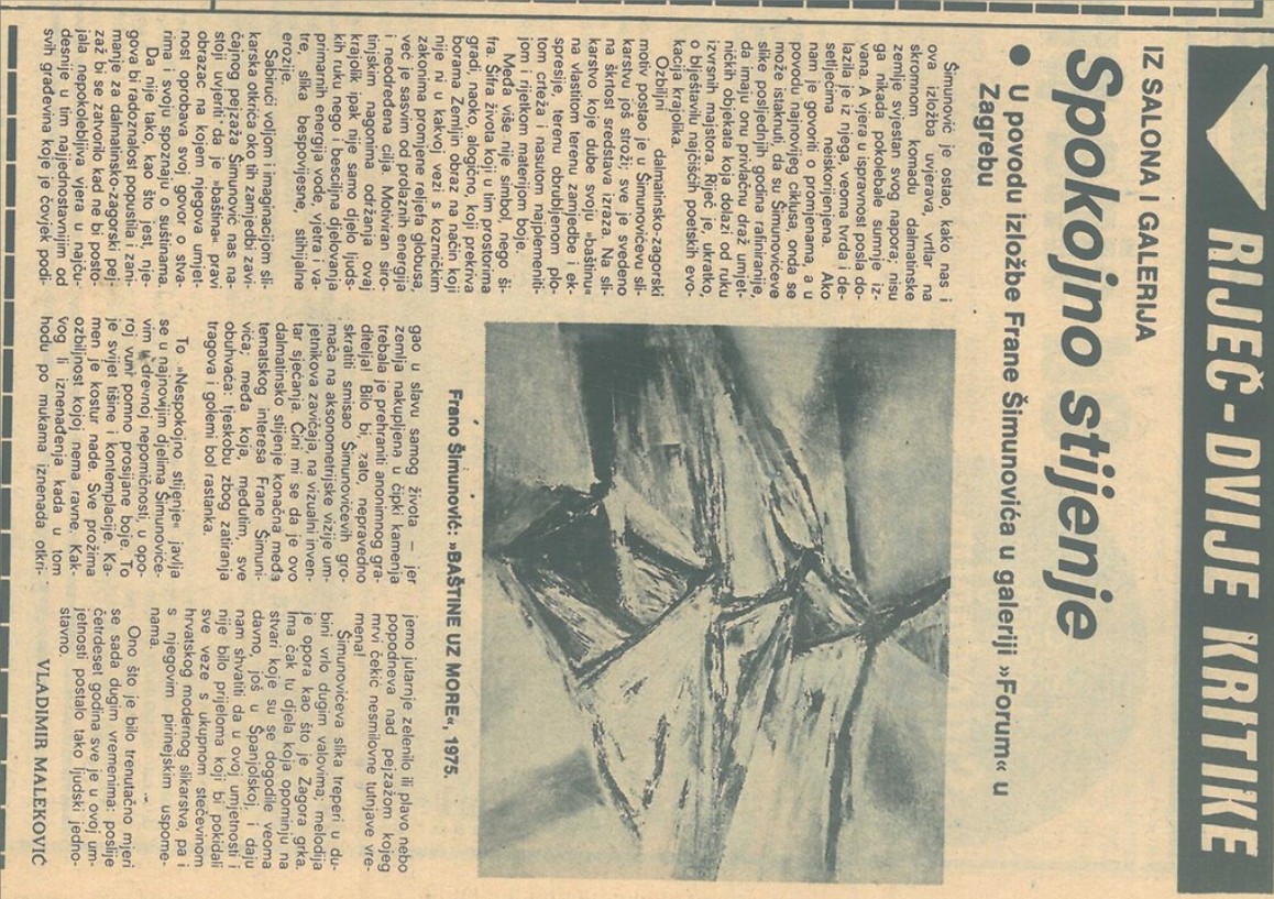 SPOKOJNO STIJENJE, Frane Šimunović, Galerija Forum