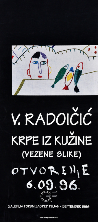 rujan 1996. VJEKOSLAV VOJO RADOIČIĆ, Vjekoslav Vojo Radoičić, Galerija Forum Vrsta dokumenta: Plakat Djelatnost: Izdavaštvo Galerijska djelatnost Autor: Radoičić, Vjekoslav Vojo Stančin, Ivo Galerija Forum, 06. rujna 1996.Izložba Vjekoslava Voje Radoičića koja je održana u Galeriji Forum.