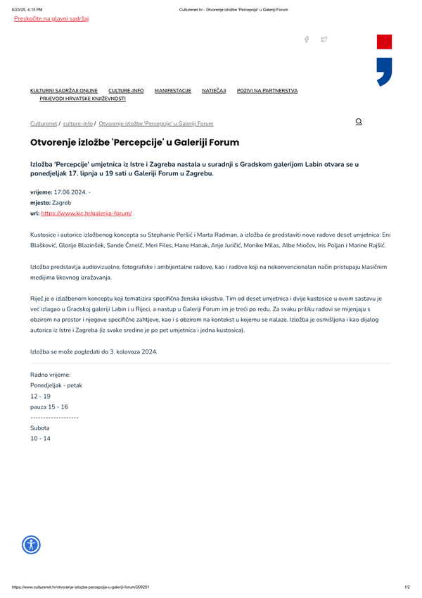 ŠTO BI NAM PRIRODA REKLA KADA BISMO POSTAVILI PRAVA PITANJA, Grupna izložba, Galerija Forum ožujak 2024.