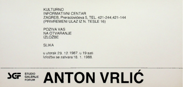 ANTON VRLIĆ, Anton Vrlić, Studio Galerije Forum