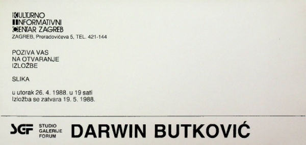 DARWIN BUTKOVIĆ, Darwin Butković, Studio Galerije Forum