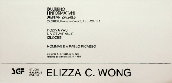ELIZZA C. WONG, Elizza C. Wong, Studio Galerije Forum