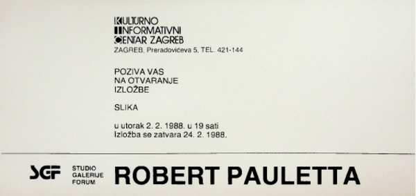 ROBERT PAULETTA, Robert Pauletta, Studio Galerije Forum