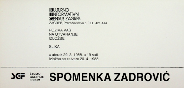 SPOMENKA ZADROVIĆ, Spomenka Zadrović, Studio Galerije Forum