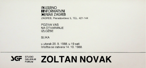 ZOLTAN NOVAK, Zoltan Novak, Studio Galerije Forum