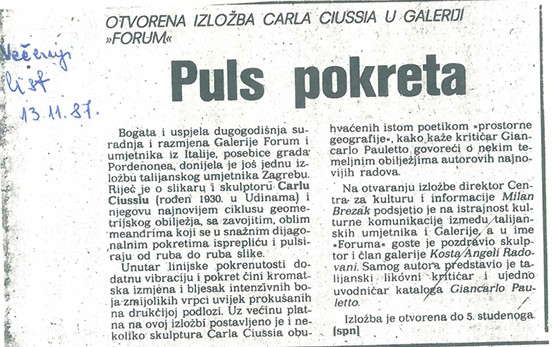 PULS POKRETA, Carlo Ciussi, Galerija Forum