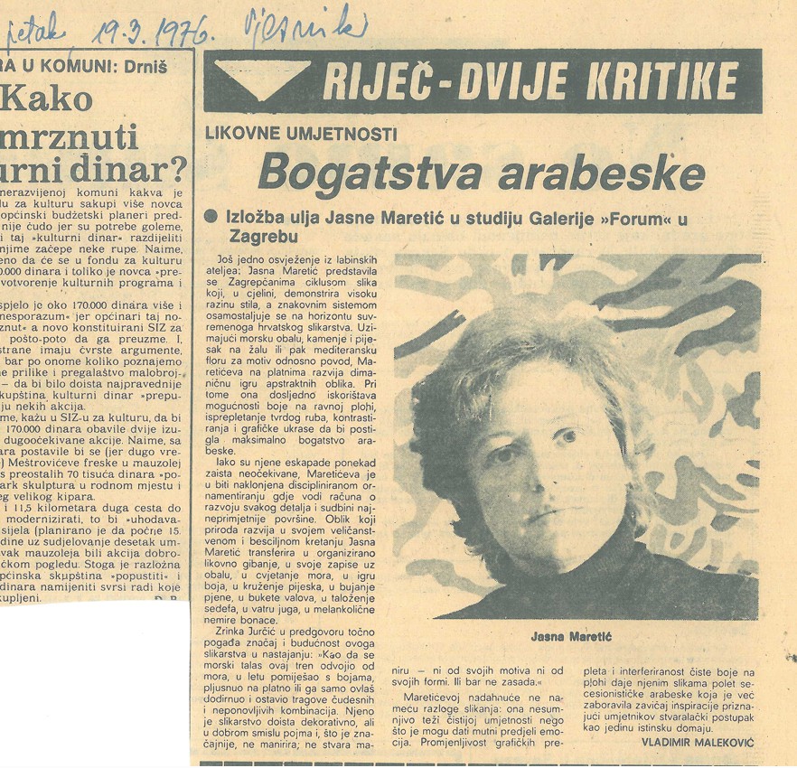 BOGATSTVA ARABESKE, Jasna Maretić, Studio Galerije Forum