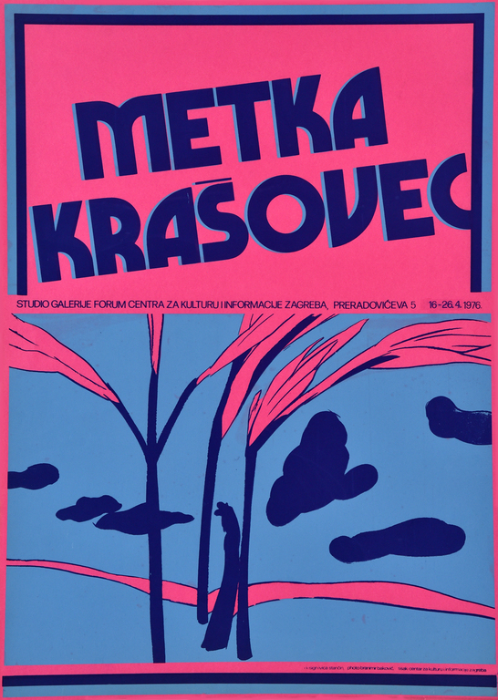 travanj 1976. METKA KRAŠOVEC, Metka Krašovec, Studio Galerije Forum Vrsta dokumenta: Plakat Djelatnost: Izdavaštvo Galerijska djelatnost Autor: Stančin, Ivo Studio Galerije Forum, 16. travnja 1976.Plakat izložbe Metke Krašovec koja je održana u Studiu Galerije Forum.