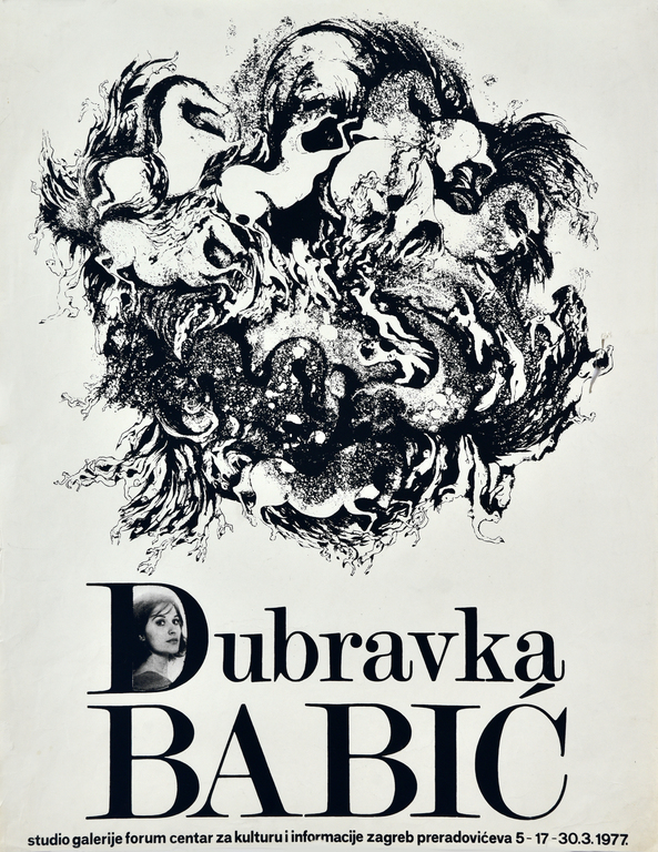 ožujak 1977. DUBRAVKA BABIĆ, Dubravka Babić, Studio Galerije Forum Vrsta dokumenta: Plakat Djelatnost: Izdavaštvo Galerijska djelatnost Autor: Stančin, Ivo Studio Galerije Forum, 17. ožujka 1977.Plakat izložbe Dubravke Babić koja je održana u Studiu Galerije Forum.
