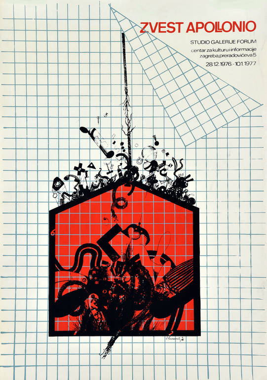 prosinac 1976. ZVEST APOLLONIO, Zvest Apollonio, Studio Galerije Forum Vrsta dokumenta: Plakat Djelatnost: Izdavaštvo Galerijska djelatnost Autor: Stančin, Ivo Studio Galerije Forum, 28 prosinca 1976.Plakat izložbe Zvesta Apollonija koja je održana u Studiu Galerije Forum.