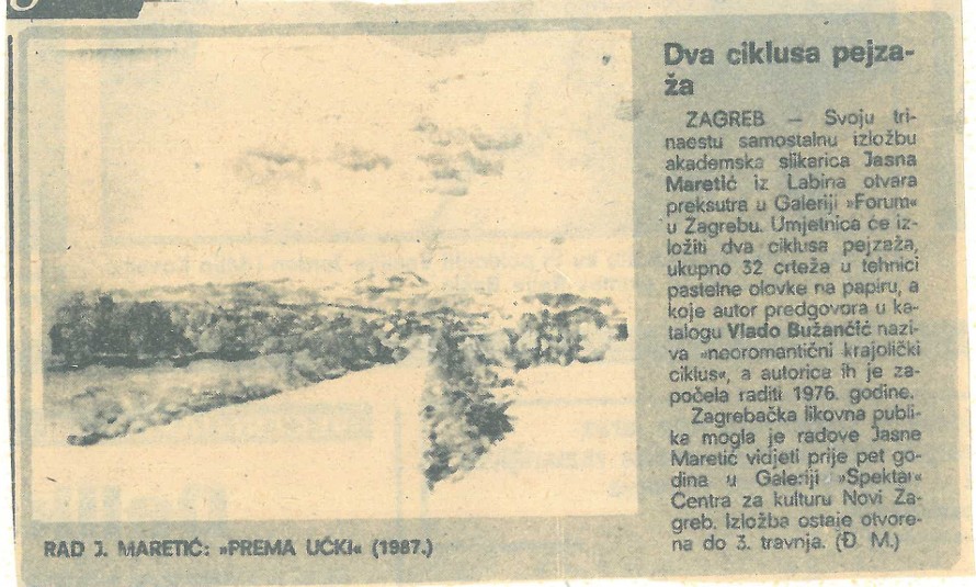 DVA CIKLUSA PEJZAŽA, Jasna Maretić, Galerija Forum