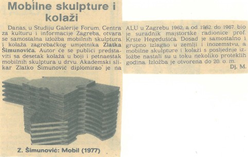 MOBILNE SKULPTURE I KOLAŽI, Zlatko Šimunović, Galerija Forum