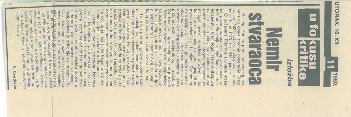 NEMIR STVARAOCA, Drago Tršar, Galerija Forum