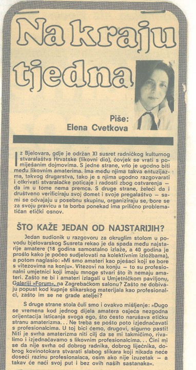 ŠTO KAŽE JEDAN OD NAJSTARIJIH, Elena cvetkova, Galerija Forum
