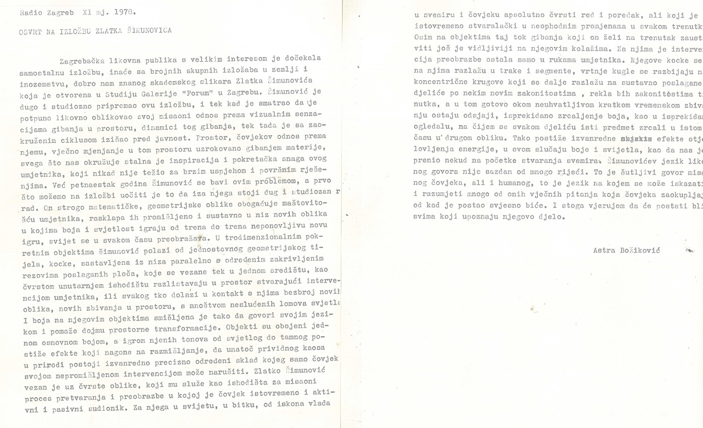 OSVRT NA IZLOŽBU ZLATKA BOŽINOVIĆA, Zlatko Šimunović, Galerija Forum