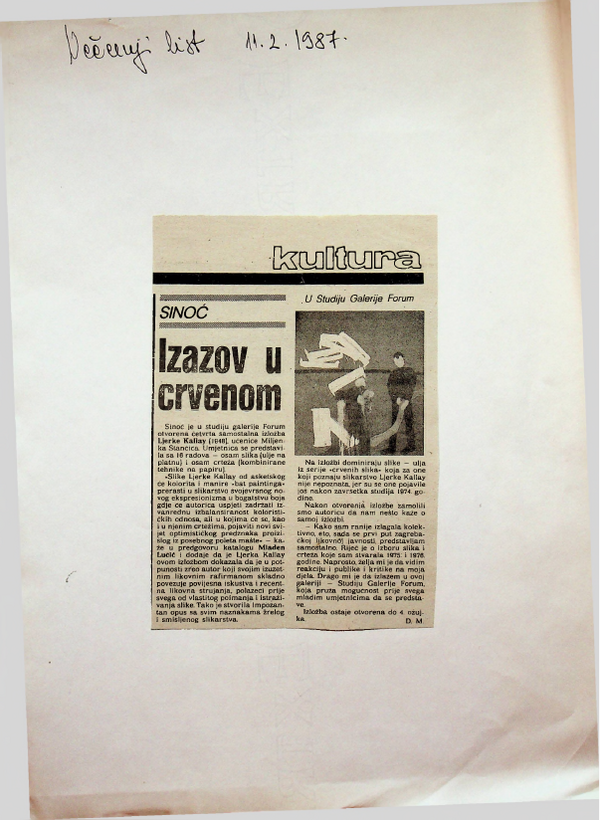 IZAZOV U CRVENOM, Ljerka Kallay, Studio Galerije Forum