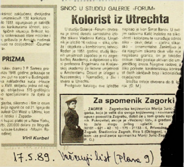 KOLORIST IZ UTRECHTA, Vladimir Katić, Studio Galerije Forum