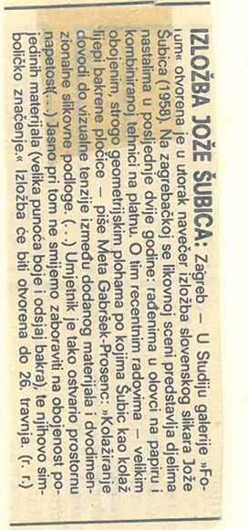 IZLOŽBA JOŽE ŠUBICE, Joža Šubica, Studio Galerije Forum