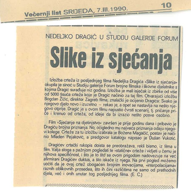 SLIKE IZ SJEĆANJA, Nedjeljko Dragić, Studio Galerije Forum