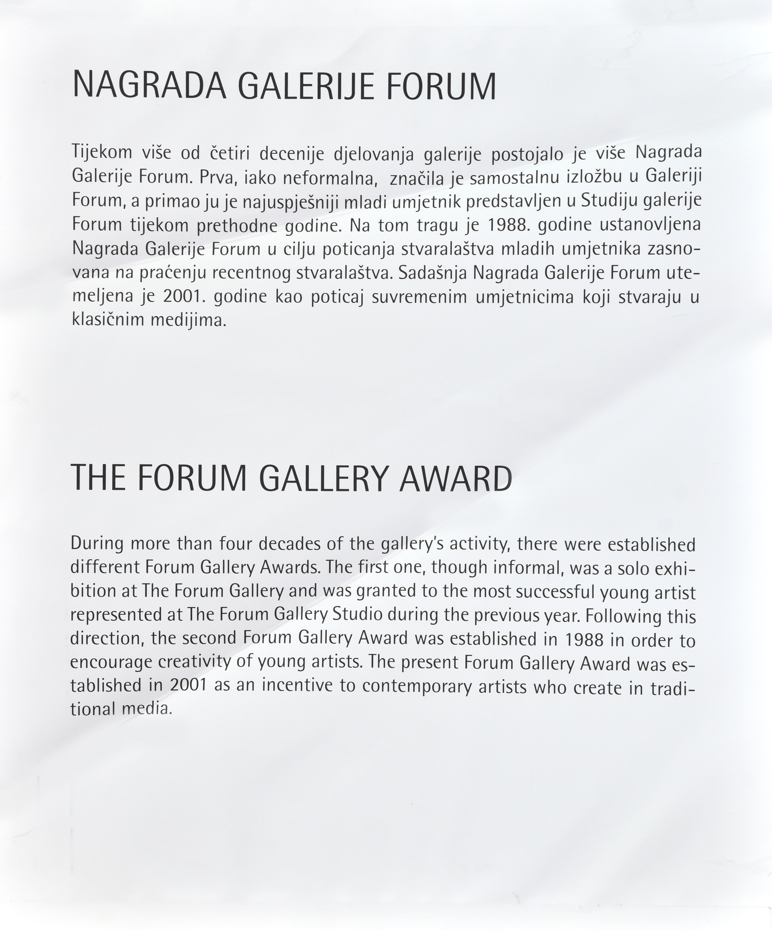 NAGRADA GALERIJE FORUM, Galerija Forum