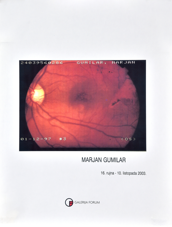 rujan 2003. MARJAN GUMILAR, Marjan Gumilar, Galerija Forum Vrsta dokumenta: Plakat Djelatnost: Izdavaštvo Galerijska djelatnost Autor: Gumilar, Marjan Galerija Forum, 16. rujna 2003.Izložba Marjana Gumilara koja je održana u Galeriji Forum.