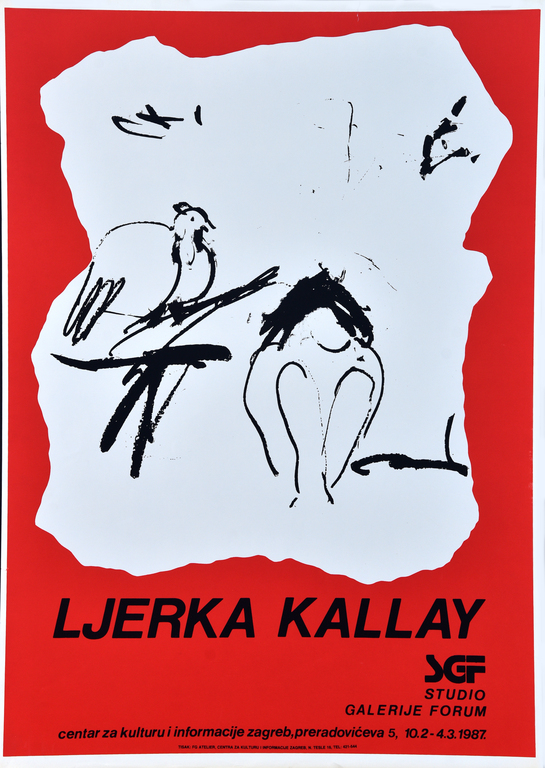 veljača 1987. LJERKA KALLAY, Ljerka Kallay, Studio Galerije Forum Vrsta dokumenta: Plakat Djelatnost: Izdavaštvo Galerijska djelatnost Autor: Stančin, Ivo Studio Galerije Forum, 10. veljače 1987.Plakat izložbe Ljerke Kallay koja je održana u Studiu Galerije Forum.