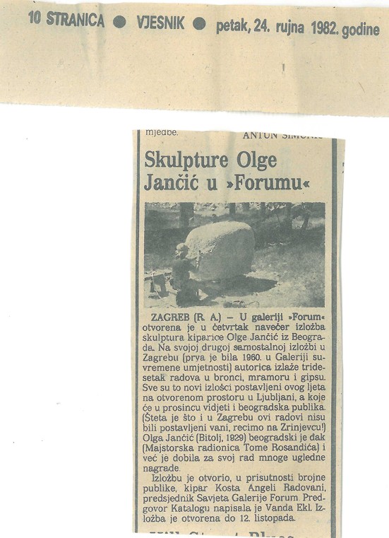 SKULPTURE OLGE JANČIĆ, Olga Jančić, Galerija Forum