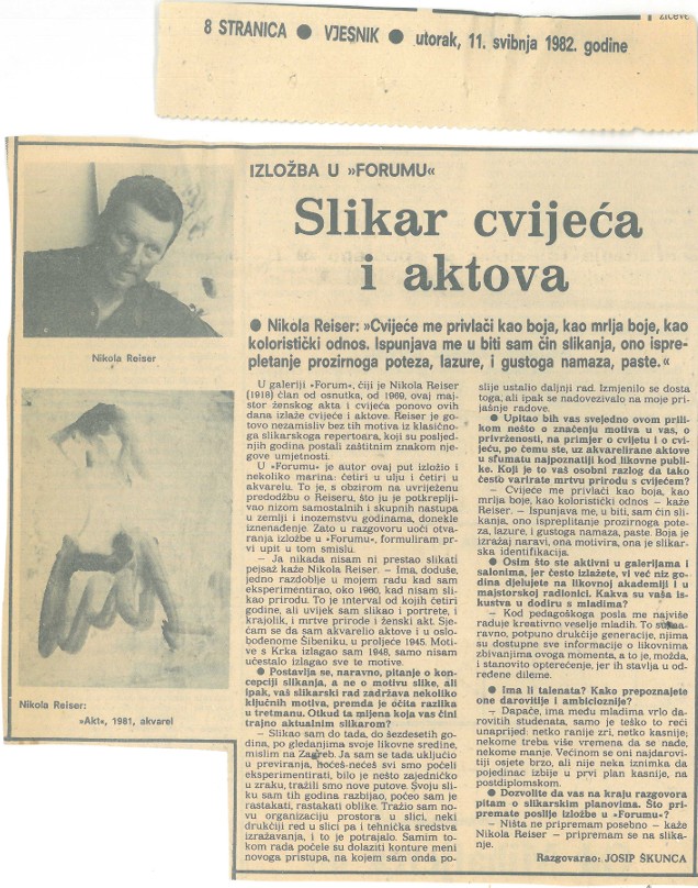 SLIKAR CVIJEĆA I AKTOVA, Nikola Reiser, Galerija Forum