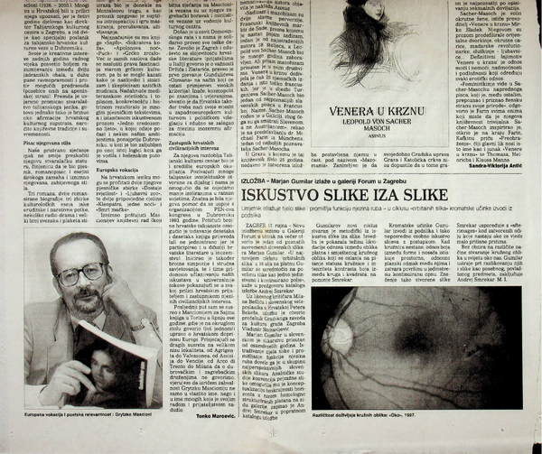 rujan 2003. MARJAN GUMILAR, Marjan Gumilar, Galerija Forum Vrsta dokumenta: Novinski članak Djelatnost: Galerijska djelatnost Vjesnik, 13. rujna 2003.Autor: Milan BešlićIzložba Marjana Gumilara koja se održala u Galeriji Forum. Preuzmi dokument