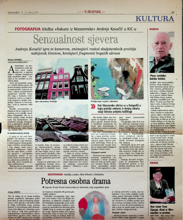 travanj 2010. SENZUALNOST SJEVERA, Andreja Kovačić, Kulturno informativni centar Vrsta dokumenta: Novinski članak Djelatnost: Galerijska djelatnost Vjesnik, 10. travnja 2010.Autor: nepoznatIzložba Andreje Kovačić koja je održana u Kulturno informativnom centru. Preuzmi dokument