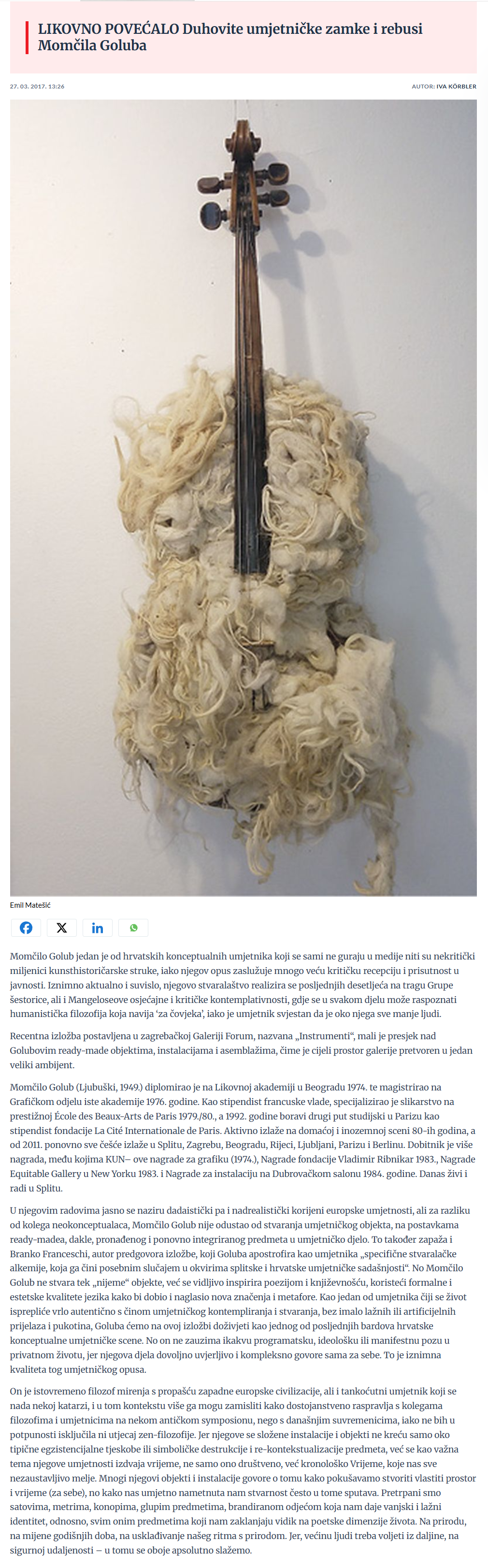 INSTRUMENTI, Momčilo Golub, Galerija Forum