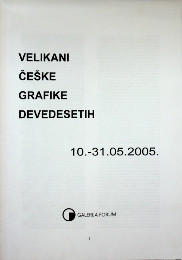 svibanj 2005. VELIKANI ČEŠKE GRAFIKE DEVEDESETIH, Grupna izložba, Galerija Forum Vrsta dokumenta: Katalog Djelatnost: Izdavaštvo Galerijska djelatnost Galerija Forum, 10. svibnja 2005.Autor: Milan BešlićKatalog grupne izložbe koje se održala u Galeriji Forum. Preuzmi dokument