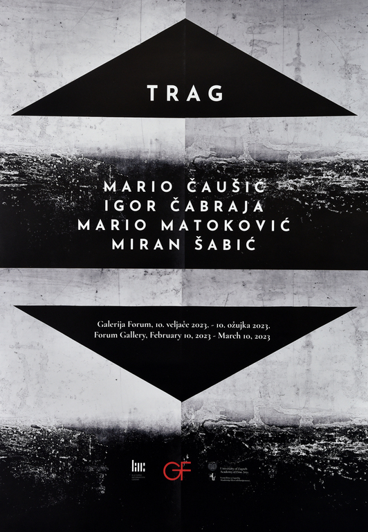 veljača 2023. TRAG,Mario Čaušić, Igor Čabraja, Mario Matoković, Miran Šabić, Galerija Forum Vrsta dokumenta: Plakat Djelatnost: Izdavaštvo Galerijska djelatnost Galerija Forum,10. veljače 2023.Izložba Trag (Mario Čaušić, Igor Čabraja, Mario Matoković, Miran Šabić) u Galeriji Forum.