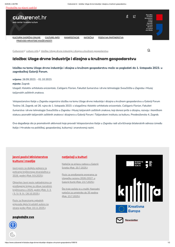 ULOGE DRVNE INDUSTRIJE I DIZAJNA U KRUŽNOM GOSPODARSTVU, Grupna izložba, Galerija Forum