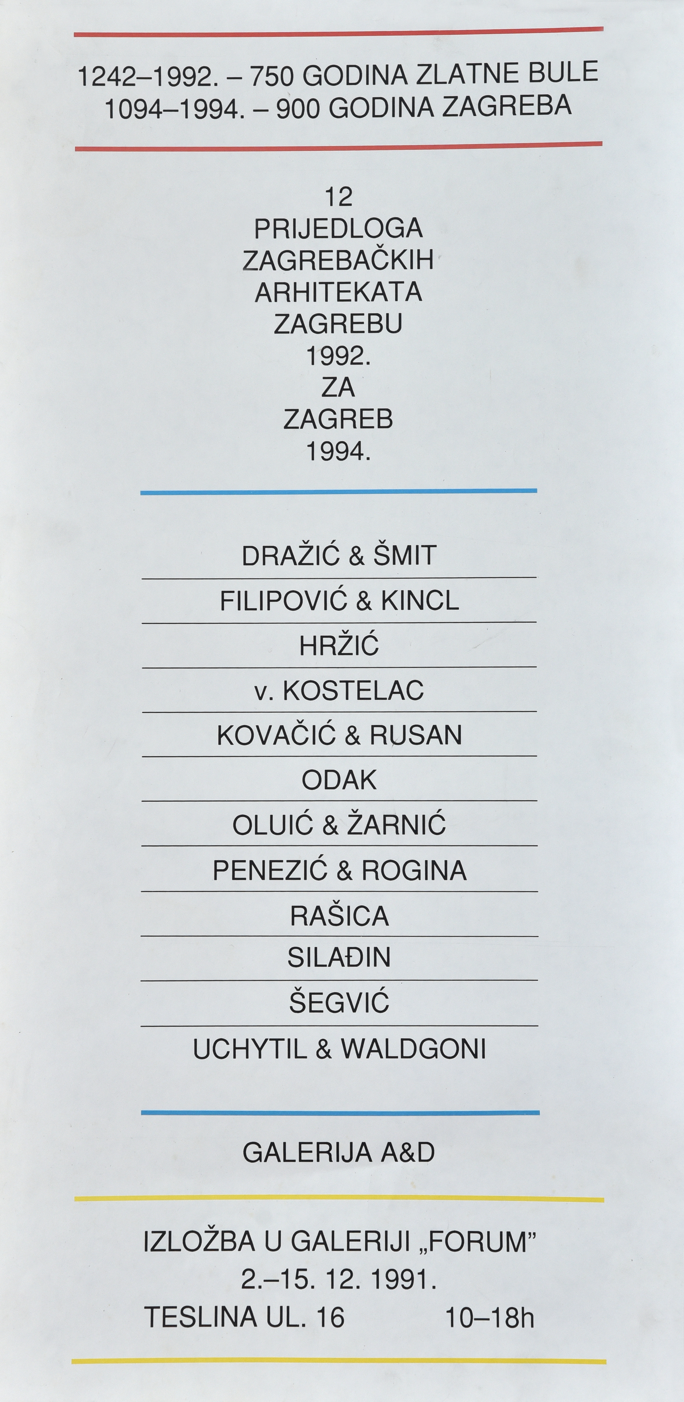 12 PRIJEDLOGA ZAGREBAČKIH ARHITEKATA ZAGREBU 1992. ZA ZAGREB 1994., Galerija Forum
