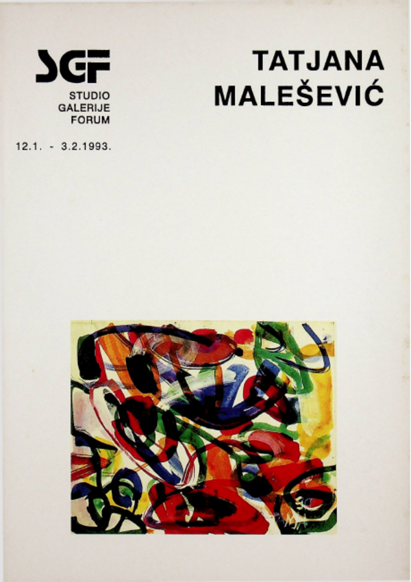 siječanj 1993. TATJANA MALEŠEVIĆ, Tatjana Malešević, Studio Galerije Forum Vrsta dokumenta: Katalog Djelatnost: Izdavaštvo Galerijska djelatnost Studio Galerije Forum, 12. siječnja 1993.Autorica: Nina HorvatKatalog izložbe Tatjane Malešević koja se održala u Studiu Galerije Forum. Preuzmi dokument