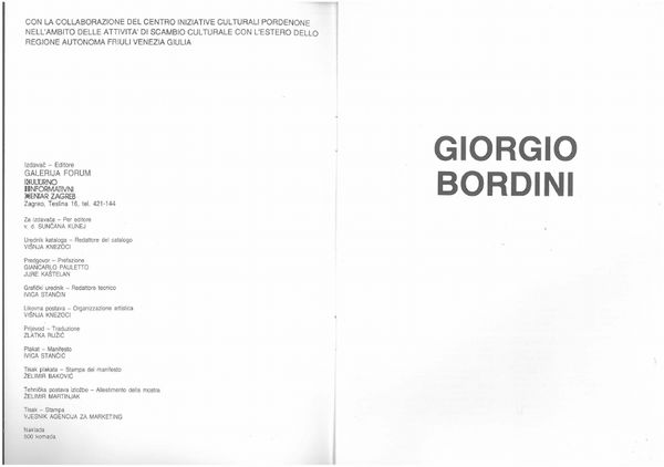 GIORGIO BORDINI, Giorgio Bordini, Galerija Forum
